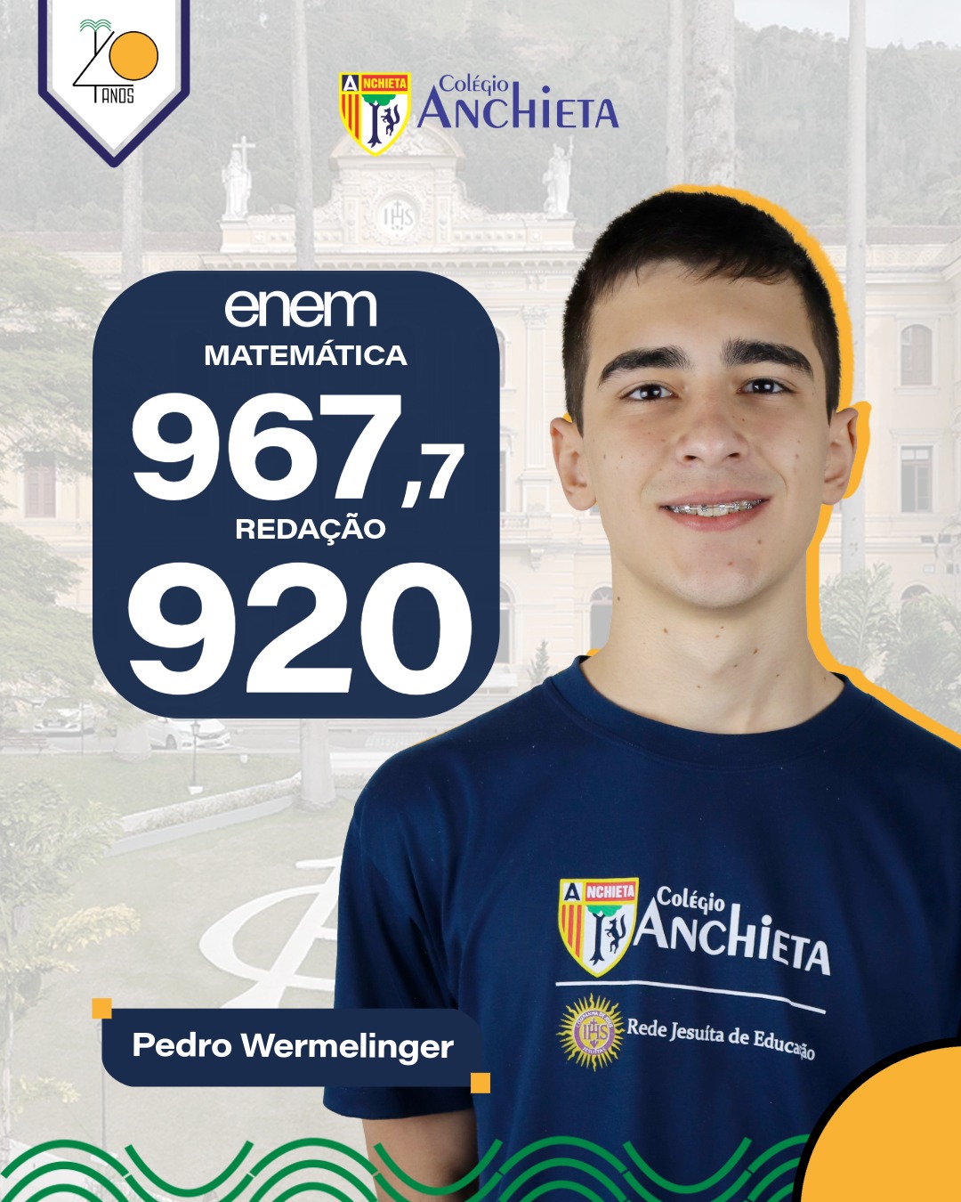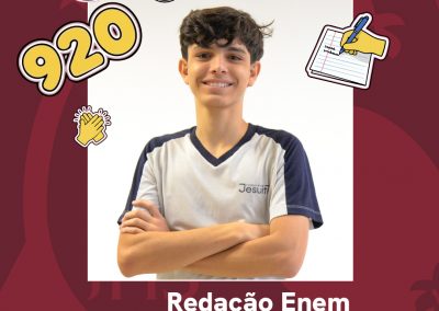 O desempenho dos estudantes da Rede Jesuíta de Educação (RJE) no Exame Nacional do Ensino Médio (Enem) de 2025 comprova a solidez de um projeto educativo comprometido com a formação integral. Com resultados expressivos, especialmente na prova de redação, os estudantes demonstraram domínio da escrita, capacidade argumentativa e leitura crítica da realidade, competências cultivadas ao longo de uma trajetória formativa que articula excelência acadêmica, valores humanos e responsabilidade social.